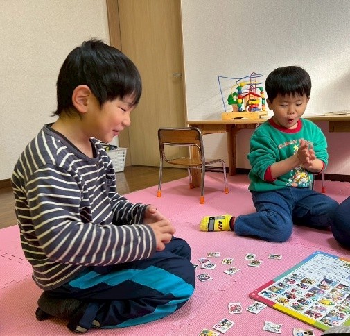 お正月遊び 2026/01/20 この記事を書いている人 - WRITER - futaba お正月遊びで、かるた遊びを楽しみました。 一枚取れるたびに「やったー!」「すごい!」と元気な声が上がり、大盛り上がりでした。 また、羽子板に絵を書いて、世界に一つだけのオリジナル羽子板も作りました。 完成した羽子板を手に、とても嬉しそうな子どもたち(^▽^)/ 数を数えながら、お友だちと協力して風船を打ち合う姿が見られました。 楽しいお正月遊びに、みんなが笑顔で参加し、和やかなひとときとなりました🎍✨ この記事を書いている人 - WRITER - futaba 関連記事 - Related Posts - プールあそび はじめまして! 縁日あそび 願い事が叶いますように☆ 最新記事 - New Posts - お正月遊び これはなんだろう? クリスマス会 秋季花いっぱい運動